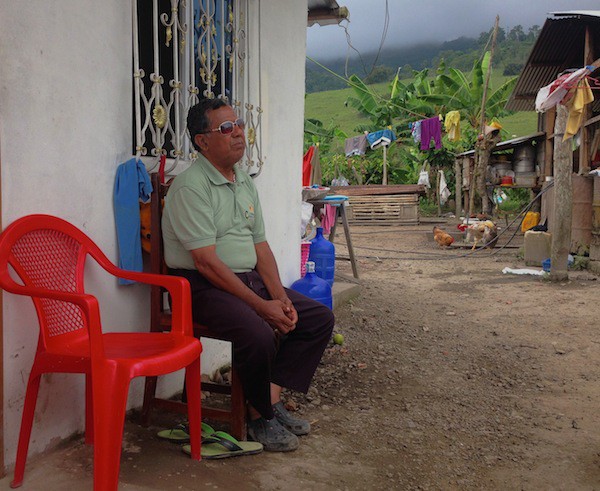 –Discúlpeme, que soy ciego–, dice de entrada don Manuel Torres Reyna, desde la silla que lo sostiene, junto a la pared. Él es el suegro de Jennifer. Perdió la vista hace seis años como consecuencia de los golpes que hace veinte le causó un choque contra un árbol, a bordo de una moto. Miguel se deja caer sobre otra silla que alguien ha traído y empieza a contar el motivo de nuestra visita. Improvisamos una sala en el patio para la charla. En esta colina en medio del monte cantan los gallos como si amaneciera todo el día.