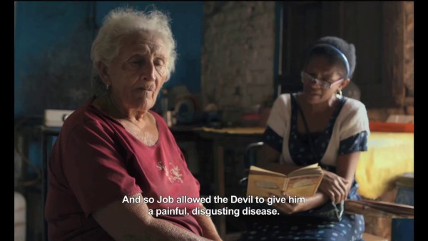 La cámara siempre fija en los personajes nos adentra en sus diferentes escenarios, mostrándonos sus vidas por separado. Vladimir siempre en el muelle bebiendo ron y ayudando con la pesca. Nelsa en su hogar, algunas veces con amigos y en otras recibiendo estudio bíblico. Casi siempre tiene compañía, sin embargo, al llegar la noche se forma un solo cuadro: solos los dos personajes en su hogar, compartiendo un mismo espacio y una misma soledad.