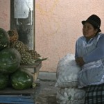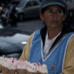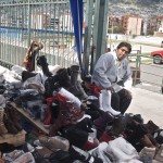 Cuando abandonamos el mercado fuimos a comprar algunas baratijas en la explanada de la iglesia de San Francisco. La plaza estaba llena de carpas plásticas y bajo ellas, un sinfín de vendedores de juguetes y de confites ofertaban sus productos con esas voces lanzadas desde los pescuezos.