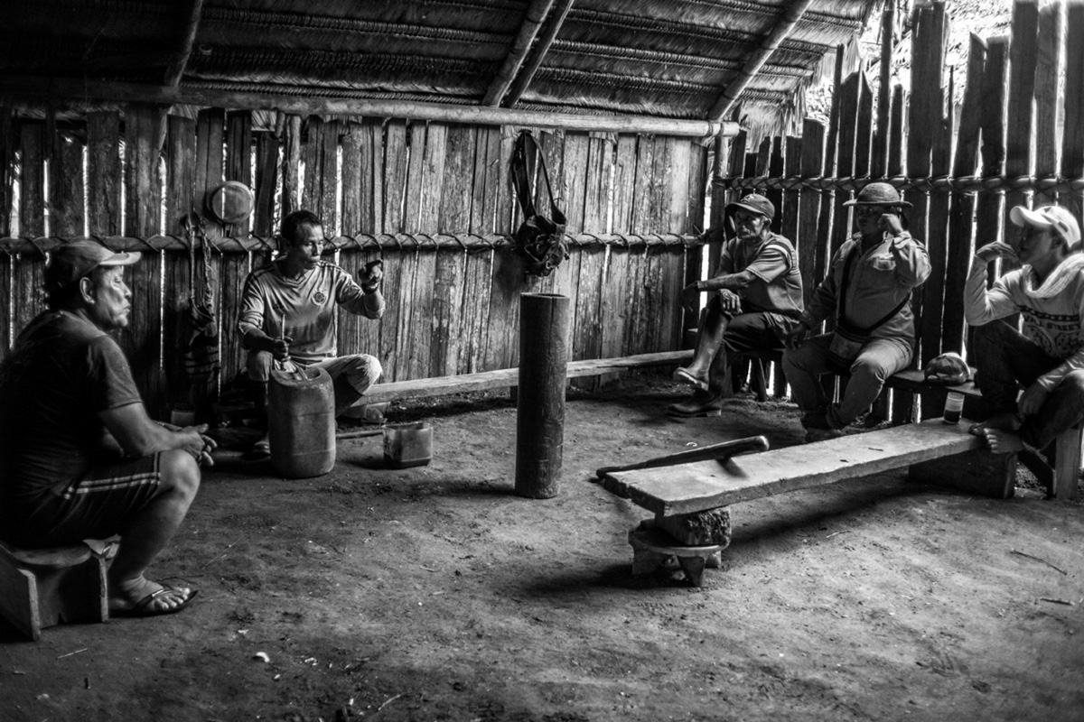 El mambe llega a una de las casas de los Miraña Bora, en la amazonía colombiana. La invitación a la pisada de maloca se representa en el pensamiento (el tabaco) y en la palabra (la coca).