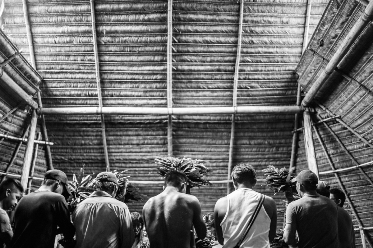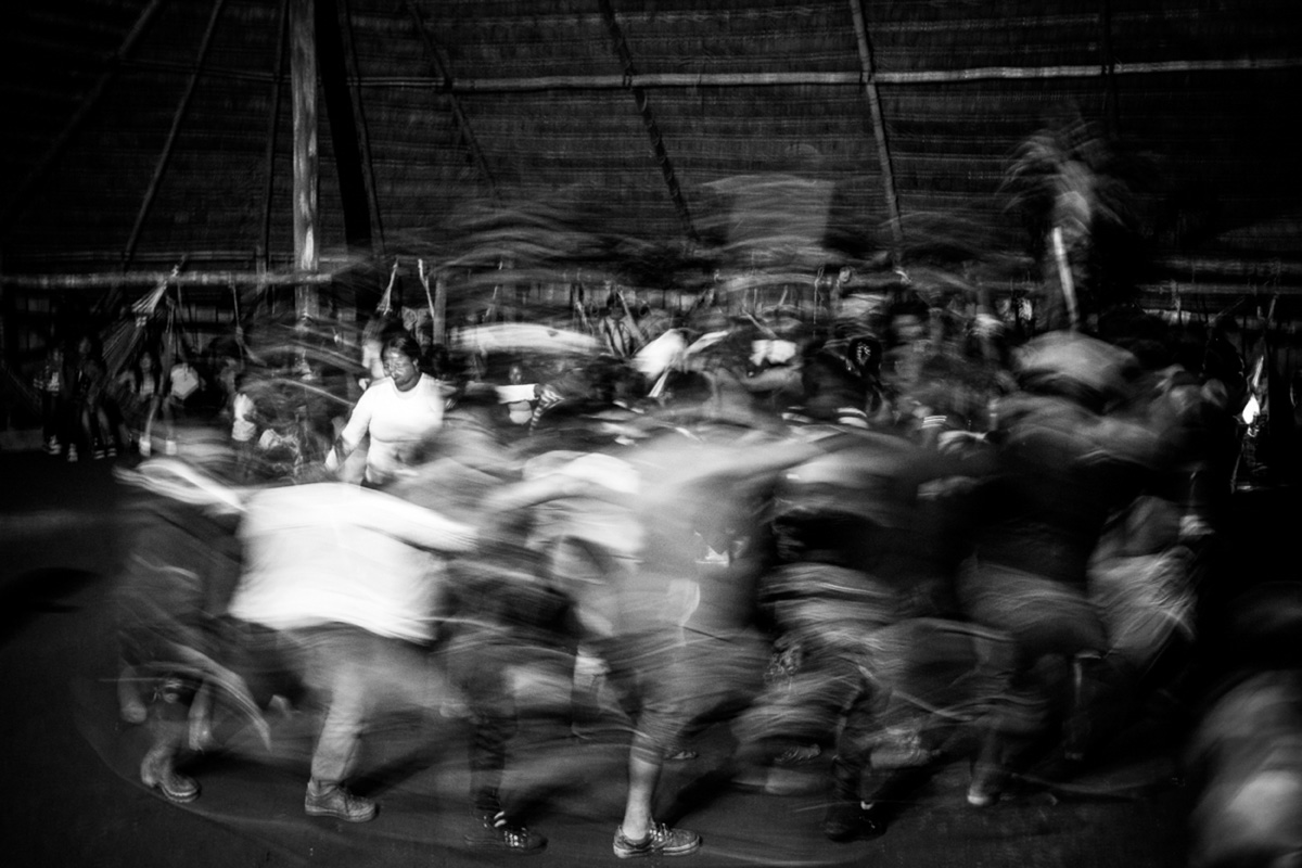 A la madrugada los cantos de Caguana comienzan para que los invitados terminen todo el líquido que queda. Después de 18 horas de baile y canto todos vuelven a sus casas. La maloca más grande de toda la comunidad ya está ligada espiritualmente al territorio, la concentración de sus ancestros está en los amarres, en las figuras que permanecen allí, en las formas del tejido que protege de la lluvia y que los conecta con Dios y en las puertas de oriente a occidente, dispuestas al sol para el cuidado de la comunidad.