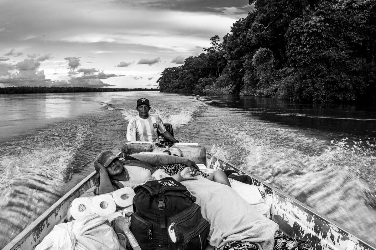 Después de nueve horas de viaje en bote, bajo un cielo totalmente despejado, se alcanza a ver las luces de las linternas de la comunidad de Puerto Remanso. Las noches al lado del río Caquetá hacen más intenso el sonido de los insectos de la selva. Ese rumor acompaña al golpe del agua contra las balsas, que aguardan cerca a la maloca.