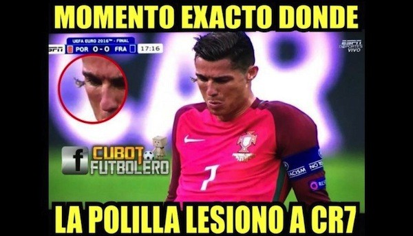 Dicen algunos memes que Cristiano Ronaldo (CR7) no hizo nada en la final de la Euro 2016. En realidad, hizo todo. Si no se lesionaba, Portugal no se acordaba de jugar fútbol. Si no se iba llorando la «superestrella», los jugadores que quedaron en la cancha no se daban cuenta de que su estrategia: Pepe-Cedric-Nani-Ronaldo, no iba a funcionar. Lo mejor que hizo Ronaldo fue irse. De esa manera, Renato Sanches, Joao Mario, Raphaël Guerreiro y José Fonte pudieron mostrarse. Portugal no era un mal equipo, simplemente no había podido mostrar que era un equipo. Al salir del campo Ronaldo, Portugal dejó de ser un equipo de cuatro jugadores y un arquero, y pasó a ser el equipo de once que mostraría las deficiencias de Francia.