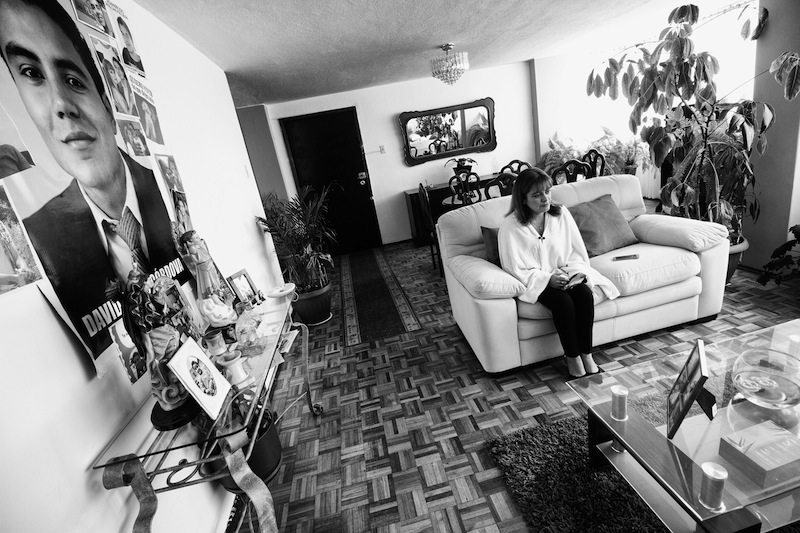 En la sala de su casa, Alexandra tiene un altar con una foto gigante de su hijo, de su amado David. Ella lo mira a diario en una serie de fotografías que lo recuerdan desde su infancia hasta el último baile que tuvo con ella, el Día de la Madre, apenas 5 días antes de su desaparición. “Él no sabía bailar muy bien –me dice Alexandra–, pero ese día me sacó a bailar, era muy alegre”.