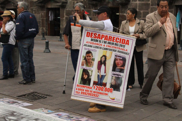 Carolina Garzón, estudiante colombiana desaparecida en Quito el 28 de abril de 2012; Juliana Campoverde fue vista por última vez el 7 de julio de 2012, en el sur de la ciudad; Gladys Rengel desapareció el 2 de marzo de 2004… Ellas son parte de las estadísticas de las más de 4.300 personas que han desaparecido forzosa o involuntariamente en el Ecuador, de acuerdo con el registro levantado por Asfadec. Sin embargo, hay algo más escalofriante detrás de las cifras: aún después de las denuncias, el tiempo y procesos, no existe información sobre su paradero.