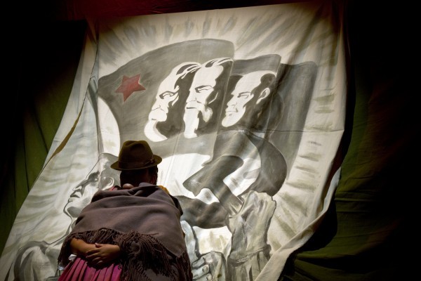 La sala del Teatro Malayerba está a oscuras. Un haz de luz verdosa ilumina la figura humana que descansa sobre el suelo. Está sentada, con la cabeza entre las piernas. Un sombrero, un poncho y una falda la visten. Un soplo hace que suene el rondín. Y Mama Tránsito Amaguaña vuelve a la vida.