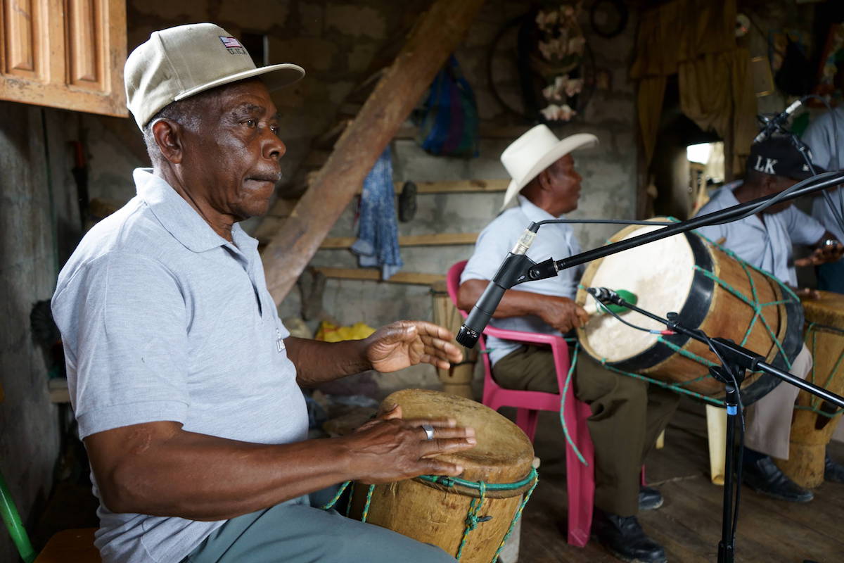 Dejando la carretera, luego de cruzar un par de parques infantiles, los sonidos cambian. Dentro de una casita pequeña, verde y melón, de madera y de bloque, vive Arnulfo Chila, líder de los arrulleros y arrulleras en Lagarto. Arnulfo ha llenado de cununos y tamboras su lugar. Él teje atarrayas, hamacas, elabora katangas y mantiene vivo –junto a un grupo de hombres y mujeres, casi todos de la tercera edad como él– el arrullo. Se han llamado a sí mismos Rescate Cultural.
