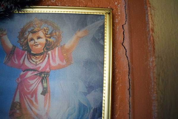 Ángel Benalcázar es propietario de una casa que está algunos metros más alejada. Sin embargo, está más afectada que las que están en los colindantes. Él está seguro de que la edificación estaba en perfectas condiciones antes de que iniciara la construcción de la Salida de Emergencia del Metro en el sector. «Cuando comenzaron la obra, me acerqué a los trabajadores y, de curioso, les pregunté cuánto tiempo se iban a demorar –cuenta–, me dijeron que más o menos dos años. Por esos días, noté que las paredes se partían poquito a poquito y así avanzó hasta que la casa se inclinó, el piso del garaje comenzó a hundirse y las paredes se cuartearon por completo. Por la bendición de Dios estamos viviendo, porque la situación es realmente grave».