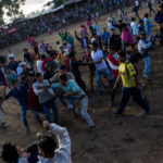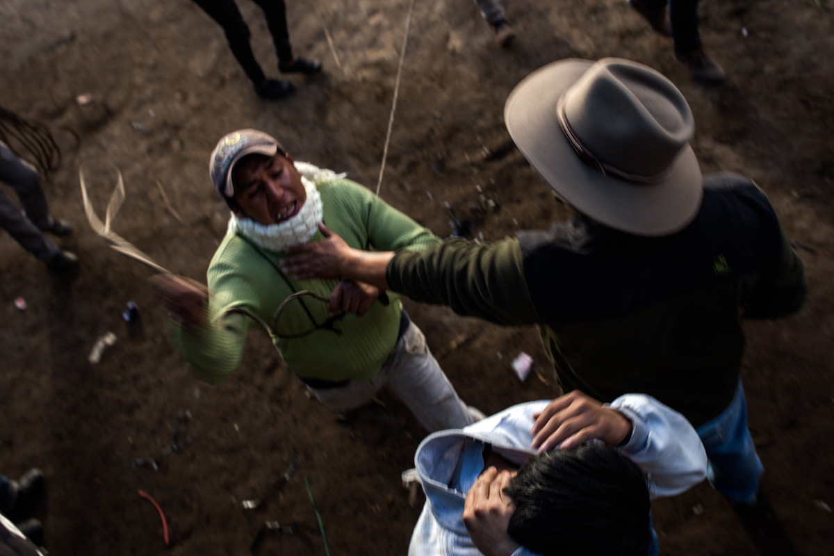 Las peleas dentro de la plaza son castigadas por los chagras con cabestro, una especie de látigo trenzado de cuero de vaca.