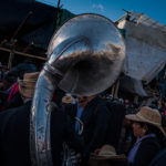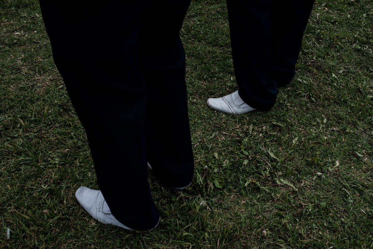 Los zapatos blancos, el terno y los instrumentos musicales hacen de las banda los coprotagonistas de la fiesta.