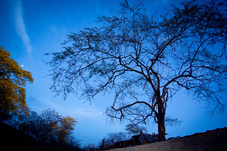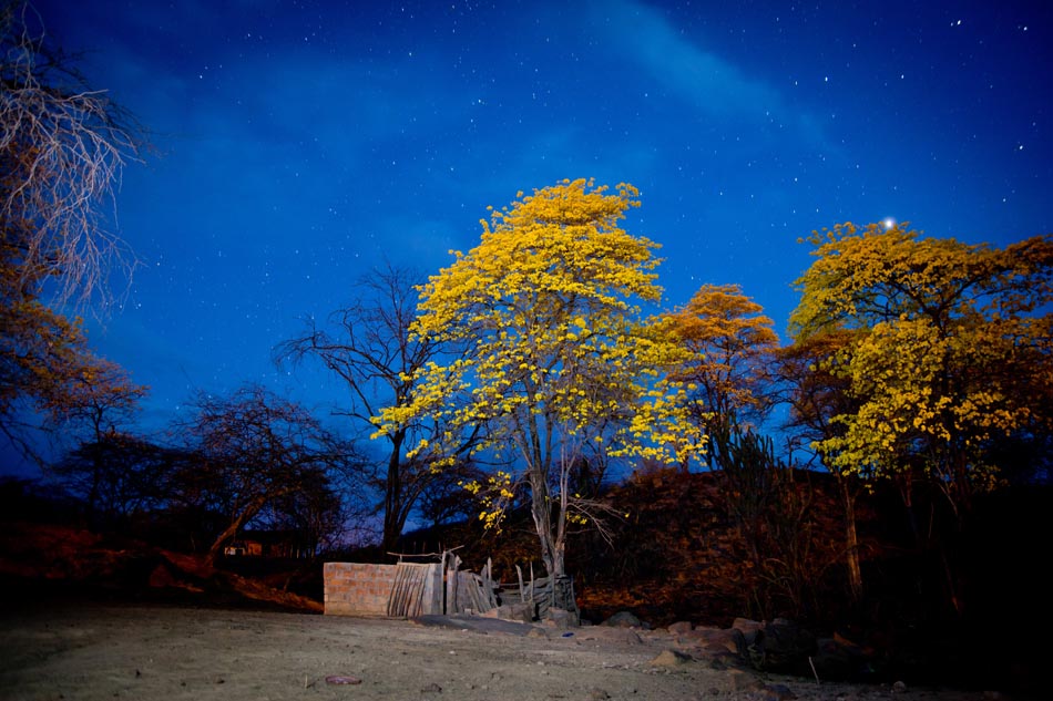 Estas imágenes muestran a los guayacanes florecidos durante la noche de la parroquia Mangahúrco, en el cantón Zapotillo de la provincia de Loja.