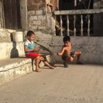 El camión de agua se retira ya ligero. Poco a poco retorna la intensa actividad a esta plaza de Bahía. El olor a arroz recién preparado y plátanos fritos inunda el ambiente. En la orilla del mar, un par de pequeños trozos de ladrillo retozan y se balancean al ritmo de la marea. Felipe y Daniel ya no lloran como hace seis meses. Ellos juegan a sobrevivir.