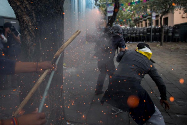 El coctel molotov explota a menos de un metro de mis zapatos, muy cerca de todos los manifestantes. El estallido del cristal contra el asfalto, la amenazante llamarada, alguien me toma del brazo y a correr…