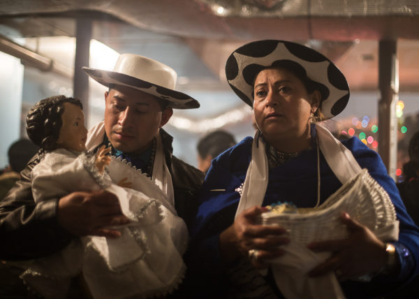 Entre las fiestas, se veían varios Niños Dios. Uno en especial me llamó la atención: el wawa, llegado del Ecuador, tenía las típicas facciones anglosajonas y también un sombrero de runa saraguro. Dice su historia que a pocos días de nacido se convirtió en refugiado en Egipto, como miles de niños palestinos que se van sumando a los 5,5 millones de desplazados, algunos de los cuales nacen ya siendo refugiados.