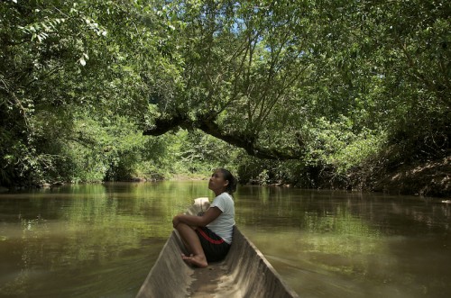 Un hombre reparte pan en moto, viene desde San Rafael, una población para colonos, de esas creadas últimamente, de aquellas que supuestamente tienen todos los servicios básicos y que llevarán la modernidad y el desarrollo a todos los rincones del Ecuador. Compramos tres fundas de pan y nos apresuramos al desayuno, ahora más tarde iremos a una zona cercana de bosque, que es parte de la comunidad y que ellos mantienen lo más intacta que pueden. Con tan solo cruzar el río y caminar unos cuantos minutos todo cambia; la confrontación por el Yasuní parece una pesadilla, lo único real son los colores imposibles de la selva.