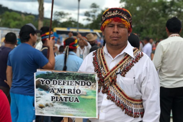 Otro de los casos de acoso judicial de este año es el de Christian Aguinda, líder indígena kichwa y presidente del Pueblo Originario del Cantón Santa Clara (Ponakicsc), quien enfrenta dos demandas por oponerse a la construcción de una hidroeléctrica en el río Piatúa, en la Amazonía ecuatoriana. Esto a pesar de que la justicia del país reconoció que el proyecto no realizó consulta previa y que incluso hubo actos de corrupción de algunos funcionarios del Estado para que continuara la construcción de la hidroeléctrica.