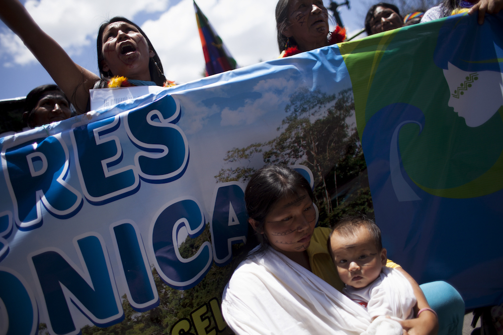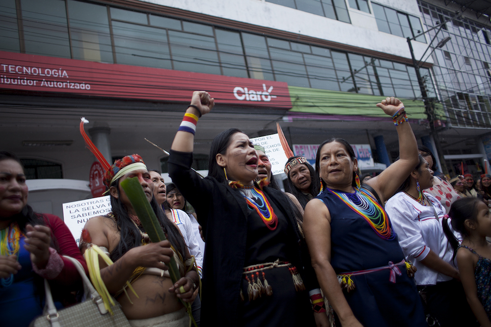Más de cien mujeres de siete nacionalidades amazónicas del territorio ecuatoriano se juntaron en Puyo –la capital de la provincia amazónica ecuatoriana de Pastaza– para mostrar su indignación frente a las amenazas que penden sobre ellas y sobre sus comunidades: la destrucción de las fuentes de agua, de los bosques y de otros recursos naturales indispensables para sus vidas, y la amenaza permanente a sus costumbres y modos de convivencia, así como la potencial desaparición de sus distintas lenguas.