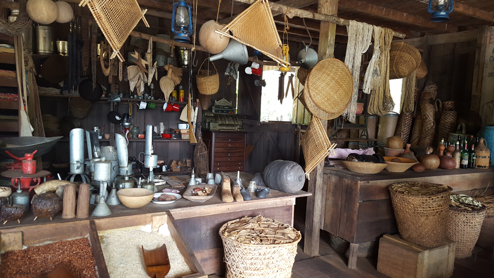 Se aleja caminando sobre esos troncos que hacen las veces de piso. Entra en la bodega del patrón y toma exactamente las mismas herramientas que alguna vez lo hicieron esclavo: una hoz, el rastrillo y la lamparilla a queroseno. Con su sonrisa de luna nueva saluda al nuevo grupo de turistas que acaba de entrar.