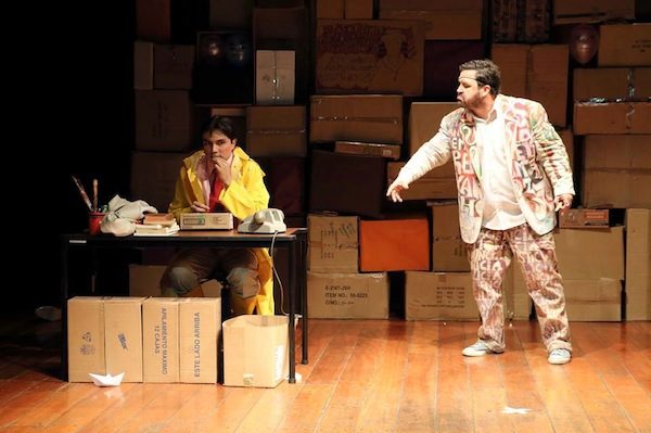 De hecho, Martín Varea es muchas cosas más de las que se han mencionado: periodista, catedrático, esposo, padre, corredor de fondo, jugador de fútbol frustrado. Menos mal que es así, pues de haber triunfado sobre la yerba, no habría podido llevar a las tablas Versión pirata, la obra de teatro que interpreta con el actor y catedrático Stevens Góngora, y que escribió con su prima, la dramaturga y artista escénica Ana Cristina Franco Varea, con base en La estética del disimulo, propuesta pictórica y literaria que Miguel Varea ha desarrollado a lo largo de cinco décadas. De ahí que la dramaturgia, el vestuario, la escenografía y la utilería de Versión Pirata también tengan el sello del pintor. De hecho, es imposible mirarla sin pensar que los personajes transgredieron los universos del lienzo o el papel y se metieron en el escenario.