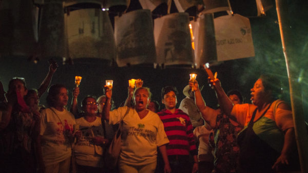Siomara Jara improvisa una antorcha. Coloca una lata de comestibles vacía sobre un palo. Le enciende las tripas con cerillos. Comparte el fuego con otras mujeres. La noche se vuelve roja. Las caras de las mujeres encienden sus ojos. Sahúman sus cabezas con luz y columnas blancas de humo. Carcajadas como gruñidos festivos salen de sus gargantas. Y levantan ambos brazos redondos como el mundo para gritar: “¡Aquí nos quedamos!”