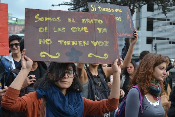 Gloria Camacho, consultora e investigadora, en el informe del 2014: La violencia de género contra las mujeres en el Ecuador: Análisis de los resultados de la Encuesta Nacional sobre Relaciones Familiares y Violencia de Género contra las Mujeres, indica que, hace 36 años, “ninguna mujer que sufría violencia por parte de su pareja tenía la posibilidad de denunciarla o de exigir sanción para el agresor, puesto que una disposición del Código de Procedimiento Penal prohibía la denuncia entre cónyuges o entre ascendientes o descendientes, quienes suelen ser testigos de los episodios violentos en el ámbito familiar”. A finales de los ochenta se empieza a discutir en el país acerca de la violencia contra las mujeres, se firman convenios internacionales para prevenir y erradicar la violencia y, como Camacho dice, “En 1995 se promulgó la Ley 103 contra la violencia a la mujer y la familia, la cual permitió que las mujeres agredidas por su pareja cuenten con un recurso para obtener protección y acceder a la justicia”.