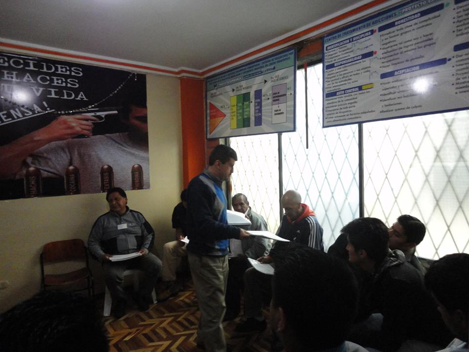 Mediodía, almuerzo y descanso hasta las tres, hora del reingreso al trabajo grupal. Damos terapias educativas y vivenciales sobre cómo mejorar su autoestima y personalidad. Intentamos comprender que el problema no son las drogas, ni el alcohol, sino la personalidad deficiente del ser humano. Traumas, resentimientos, recriminaciones que a la final se convierten en el pretexto para llegar a un consumo desenfrenado de drogas.