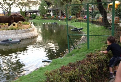 Dentro de la jaula que se ha armado en medio de los Jardines del Malecón, unas cuantas familias recorren los senderos y posan junto a las diecinueve bestias antediluvianas. Un diario guayaquileño ha dicho “Es lo más parecido al parque jurásico de Steven Spielberg, tanto por el tamaño de los animales, los movimientos y sonidos que emiten y la textura de sus pieles, como por la abundante vegetación que distingue a los Jardines del malecón Simón Bolívar”.