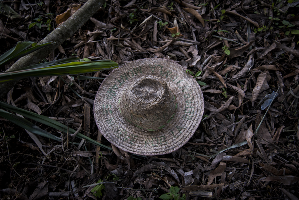 Sombrero de Jaime Hernández, de 49 años, campesino de La Sierra, vereda de Macayepo, en El Carmen de Bolívar. En 1998, durante un secuestro, fue obligado a componer canciones que alabaran las ideologías de las guerrillas ERP a cambio de continuar con vida. Años más tarde, las FARC lo desplazaron.