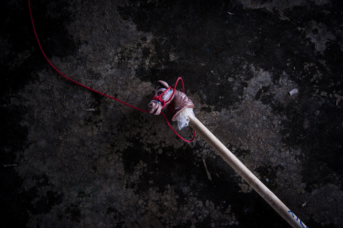 Juguete encontrado en una de las casas de víctimas de desplazamiento forzado en Batata, Córdoba. La época en que estas tierras se usaban para la ganadería y la cría de caballos se olvidó por culpa de la guerra.