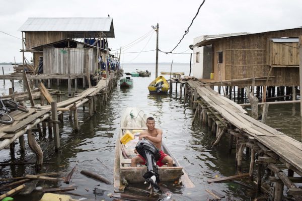 Lorgio hace equilibrio sobre las tablas extendidas a lo largo de la costa. La casa de su hermano –otro pescador– se sostiene en nuevos maderos clavados debajo del mar. Los que había antes se averiaron con el temblor. Lorgio prepara las redes en esta casa flotante donde vive su hermano, justo donde el gobierno ofreció construir un puerto pesquero artesanal que no asoma todavía las narices. Lorgio se pregunta en voz baja si el puerto llegará algún día.