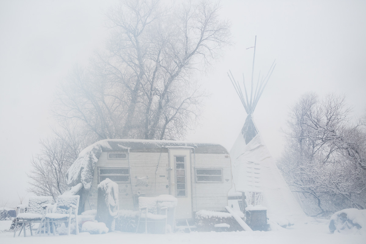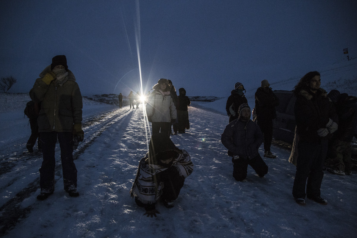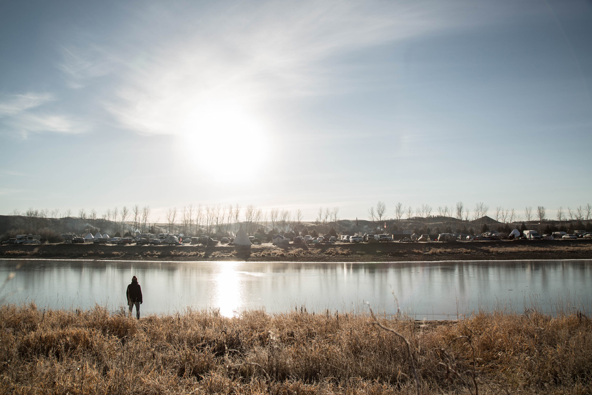 Los Protectores del Agua se resisten a la construcción del oleoducto DAPL, de 1 172 millas, que busca transportar hasta 450 000 barriles de crudo por debajo del río Missouri y de tierras ancestrales. Su presencia atenta contra las fuentes de agua de miles de personas, viola la soberanía indígena y atenta contra su cosmología.
