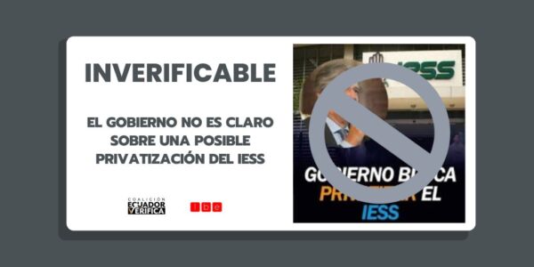 INVERIFICABLE El 14 de noviembre se viralizó en Twitter una imagen que anunciaba la intención del gobierno de Guillermo Lasso de privatizar el Instituto Ecuatoriano de Seguridad Social (IESS). El tweet también denunciaba que se había iniciado una campaña mediática para legitimar dicha decisión. El usuario que compartió inicialmente la imagen hizo referencia a un […]