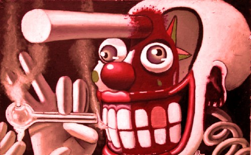El negro vigilante tomó al Bolsillo por el cuello con su metralla para sacarlo de combate. En La Mansión estaban prohibidas las peleas. Y mientras lo hacía, el Bolsillo le marcó una cruz profunda en la cara con la punta de su navaja. El fantasmagórico rostro del espectro se pintó de rojo.