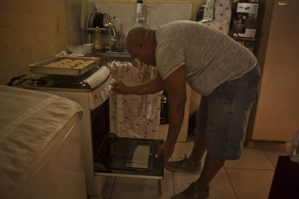El pan casero es la principal fuente de ingreso para la familia Oliveros Baró. Armando –después de trabajar en una fábrica de ropa durante tres meses colocando botones y planchando– es ahora auxiliar de una empresa que monta cámaras de seguridad en edificios. Pero esos ingresos no bastan. Armando no gana ni el salario mínimo. Por eso, durante las noches y los fines de semana, prepara pan para vender por encargo de clientes cariocas o en las ferias de los alrededores del barrio.