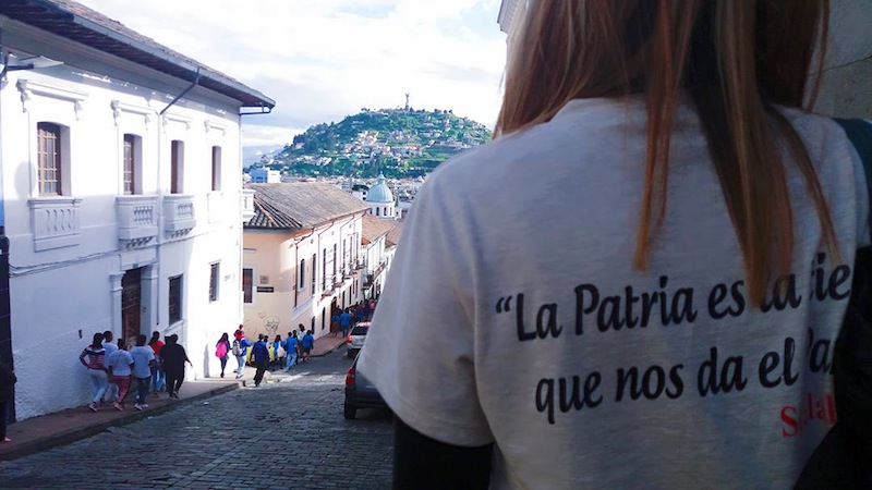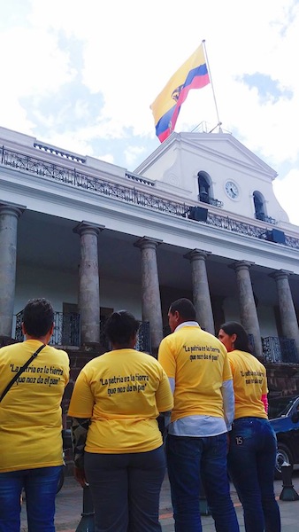 Gabriela, Anita, Paola y yo caminamos durante tres horas juntas por la vieja ruta de la representación católica del calvario, en la calle García Moreno, desde La Basílica hasta la Plaza Grande, en pleno corazón de Quito. Ellas se confunden entre la multitud de migrantes, refugiados y defensores de derechos humanos que van rumbo al Palacio de Carondelet, donde está el presidente Rafael Correa. Al final del día entregarán unas cartas personales y luego pasarán por la Iglesia a contarle sus penas al Dios de los católicos.